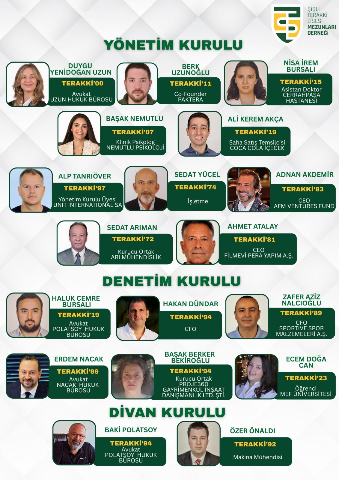 Derneğimizin 21 Şubat 2026 tarihinde gerçekleşen genel kurul toplantısında yeni dönem Dernek kurulları seçilmiştir. Başarılar dileriz.